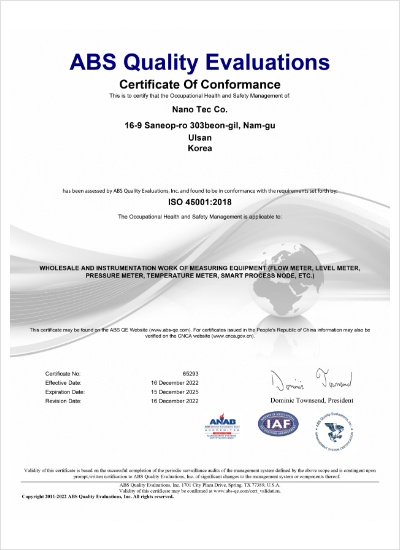 ISO 45001 인증서(영문)
